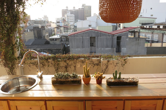 浴室外面有個舒服的露臺。露臺佈置得很不錯,如果地上的水管可以收起來,然後不要放那座有點醜的曬衣架的話就更好了。其實臥室旁邊也有另外一個木作的露臺,但是兒童不宜怕危險,所以我們就沒有使用了。