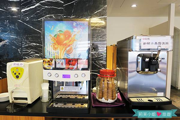 這裡的果汁、咖啡、茶包可都是在水準之上。像是提供百香果、多多、蔓越莓跟水蜜桃四種口味的果汁,一旁還有當季新鮮水果風味的冰淇淋,我們到訪的時候吃到哈蜜瓜味道。