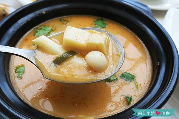 泰式椰漿湯底搭配菇類增加咀嚼感,濃郁風味的湯頭與