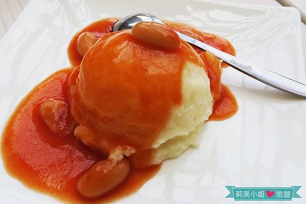 這道中西合併的菜餚,將英國最經典的茄汁黃豆搭配薯泥的方式來料理,相當開胃且有飽足感。