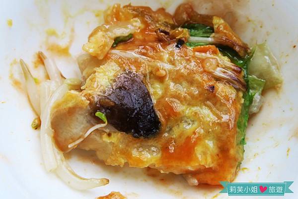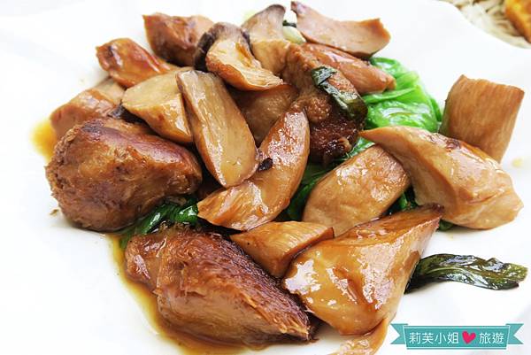 這一道蚵仔煎是天心岩蔬食餐廳前三名讓我們驚豔的料理,靠著太白粉、豆芽菜、蛋跟紅醬來增色,沒有吃到蚵仔卻又好像被包裹在太白粉裡頭咕嚕就被我們吞下肚。
