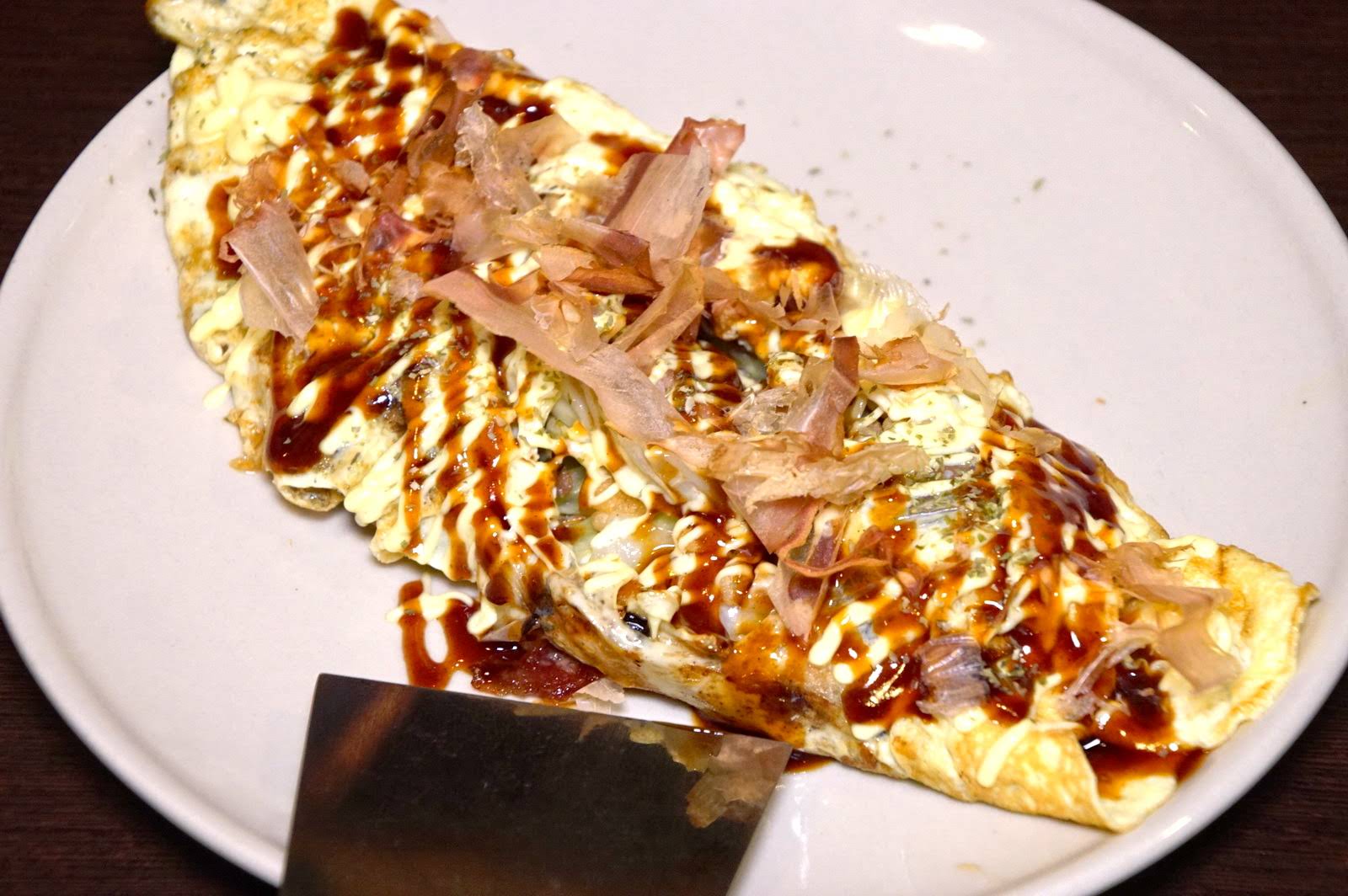 吃起來有點像大阪燒與蛋包飯的綜合版,但沒有麵和飯在其中