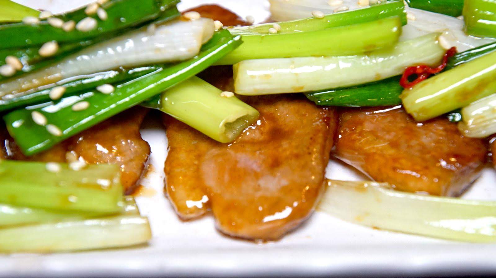 合鴨青蔥燒,烤過的鴨胸肉片,塗上帶著甜味的日式醬汁,配上大量的蔥段