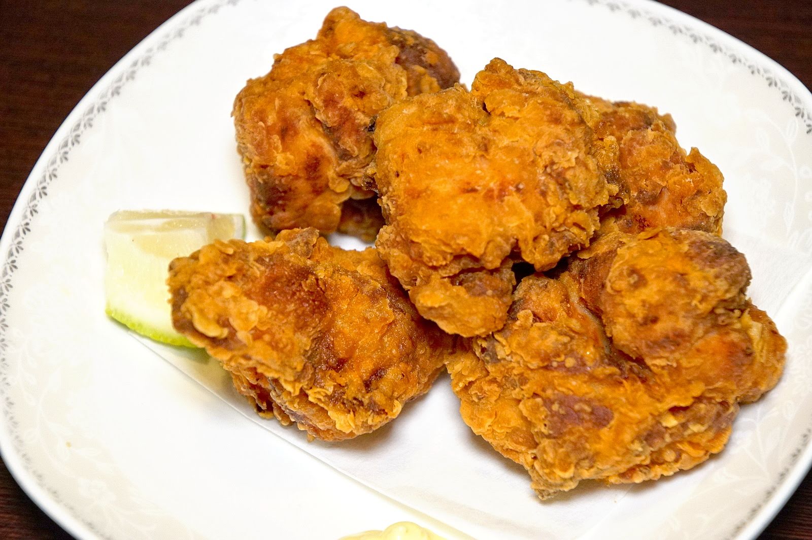 雞唐揚,日式醬油炸雞,外觀看起來顏色比較深,雞汁有完整的包覆在炸皮內