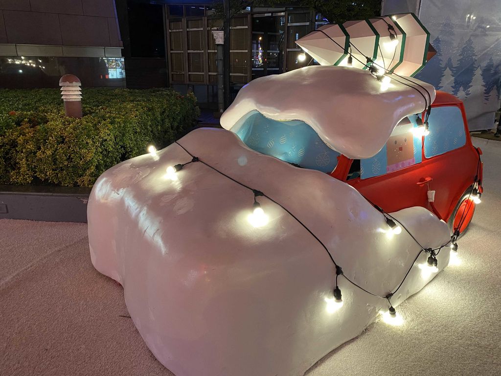 今年是佈置被雪遮蓋的車子樣式喔~