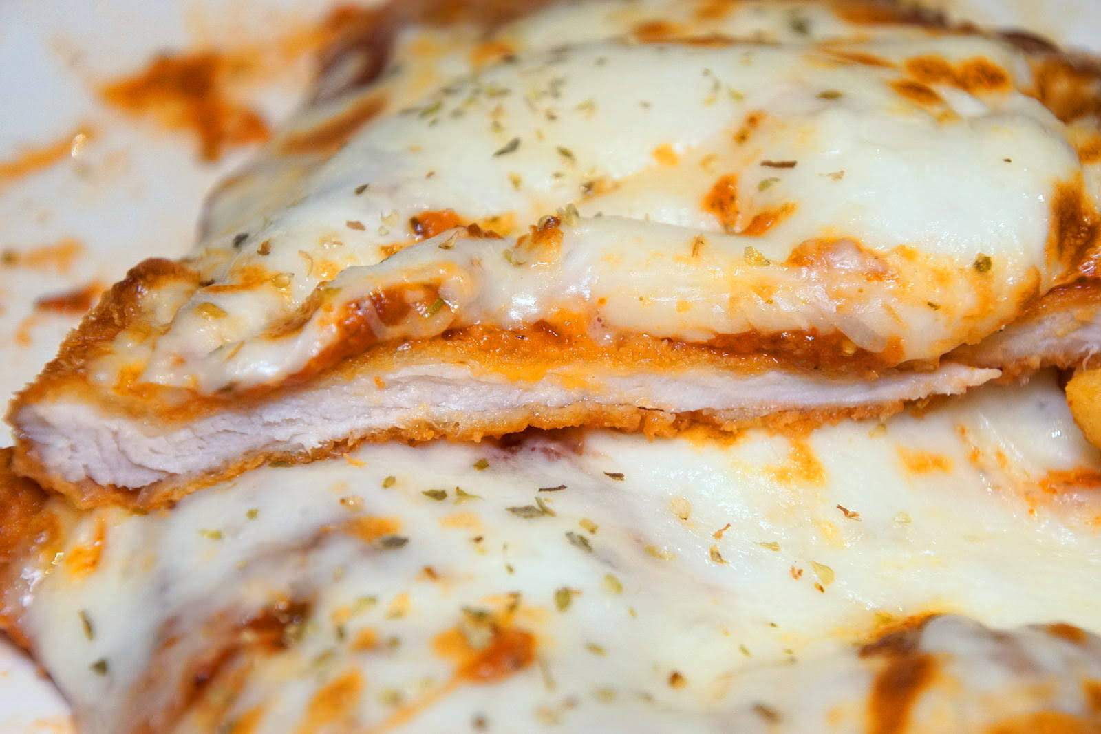 用刀切開雞排可以清楚地看到炸皮、紅醬以及起司,吃起來有很濃的番茄味但又帶一點奶香味