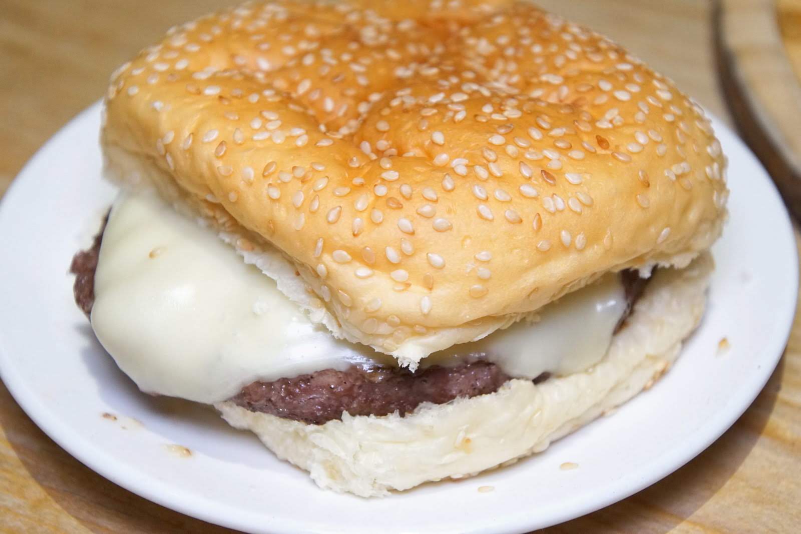 內餡是烤過的牛肉片配上漢堡肉,讓兩種口感一次滿足的漢堡
