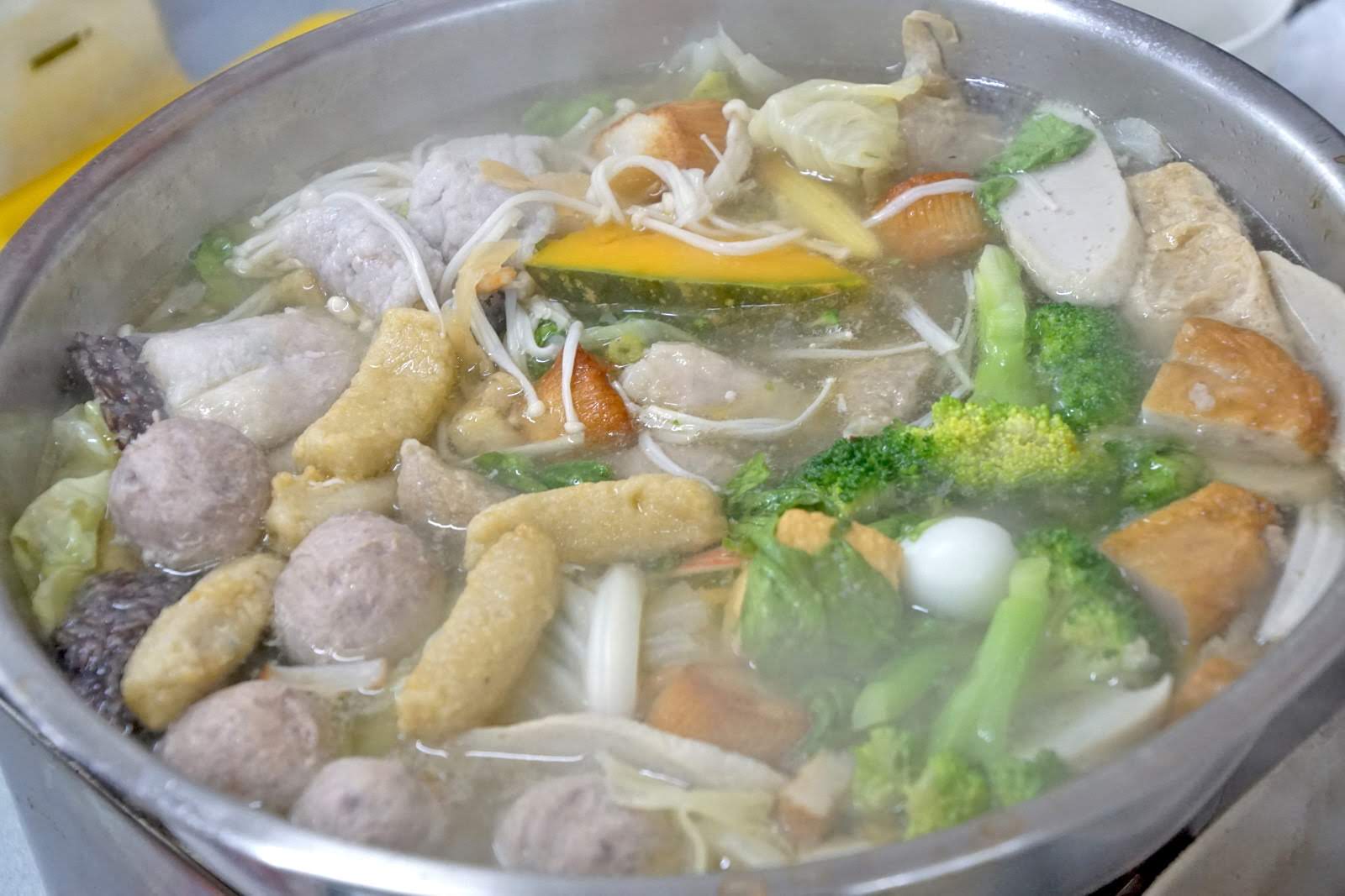 湯底是經典的汕頭火鍋,味道與香氣來源是扁魚、蝦米以及白蘿蔔,直接喝一口就可以嘗到到甘甜的滋味
