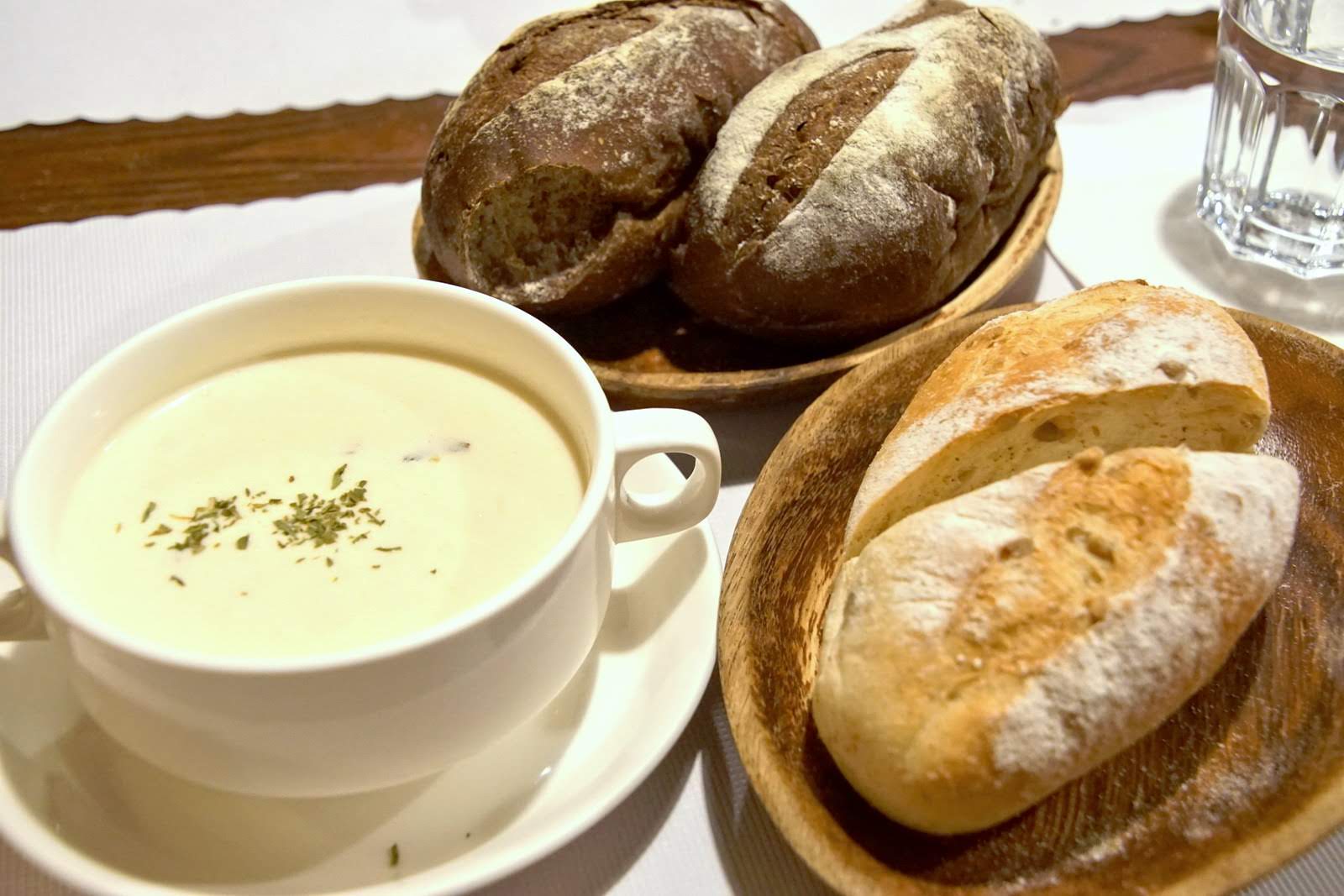 麵包都是老闆娘自己烘培製作,吃起來外皮有酥脆的感覺,而裡面的質地卻很柔軟。香氣是很純粹的麵粉香,沾著濃湯一起喝非常合適