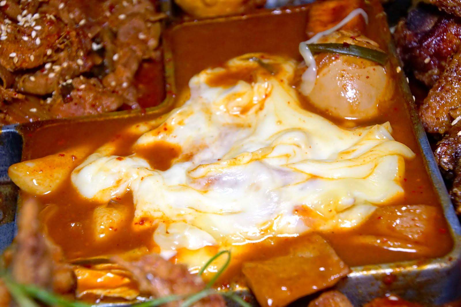 瀑布起司基本上是加在辣年糕的醬汁中,然後供其他食材沾著一起吃。不過,當天店員完全沒有解釋吃法,導致我們的起司整個結成一團無法沾... 店家也沒有要處理的樣子,讓本來很愉快的用餐印象大打折扣