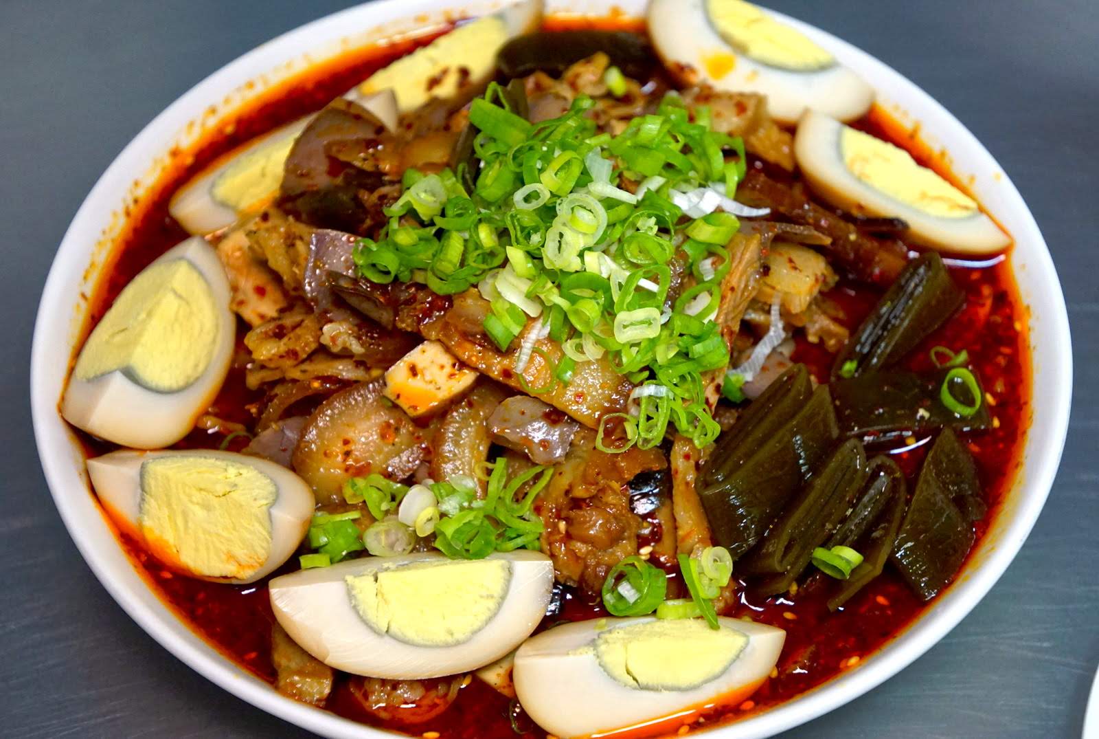 有別於台南常見的五香口味,這裡的滷味是以辣滷汁先滷過,然後加了辣油一起上桌。吃起來滷得十分入味,而且香氣四溢,堪稱當天最被大家稱讚的一道料理,還有團員吃完後欲罷不能,又打包了一份回家