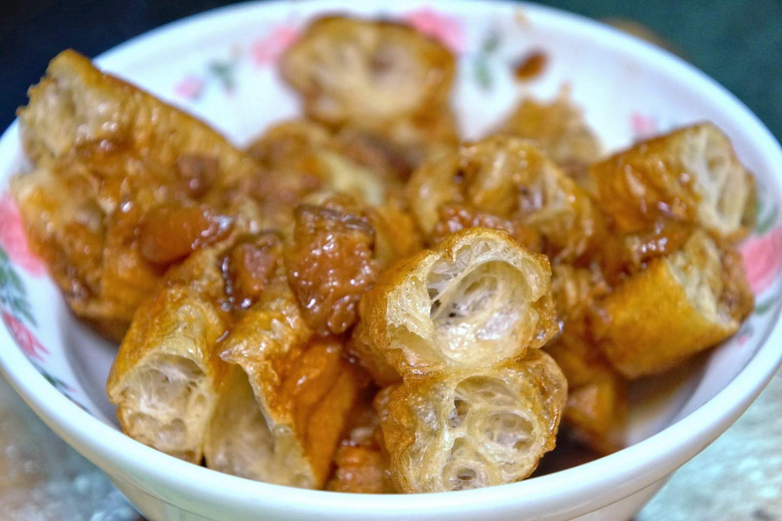 肉燥油條 NT. 20,利用老油條的脆度與肉燥結合,讓油條混著肉燥的香氣一起吃,也就是肉燥+主食的概念,所以論本質上與肉燥飯差不多的模式,只是換了一種口感。