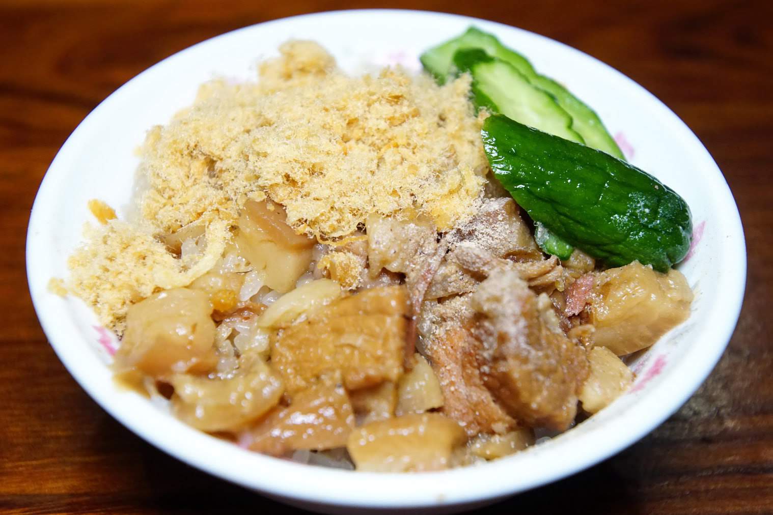 拌好後的米糕,肉燥是肥瘦各半的模式,跟台南其他家米糕的肉燥比起來較為不甜,屬於以香氣和鹹滷汁取勝的模式,對於不喜歡甜口肉燥的人,算是很棒的選擇
