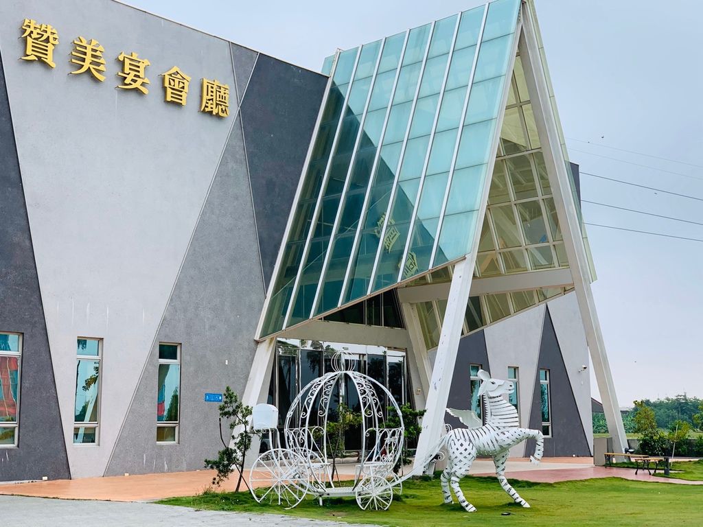 坐落在嘉南平原上的南科贊美酒店,從高橋下就可以看到它繽紛色彩的飯店主體,而在旁的可是美麗的水晶教堂與宴會廳。