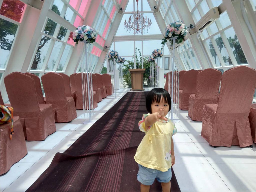 水晶教堂是個超浪漫的地方,怎麼擺怎麼拍都漂亮,先派茹茹預演一下。水晶教堂的側邊用彩色玻璃拼出了愛情永恆不變的密碼,在光影交錯的玻璃屋許下一生的承諾。