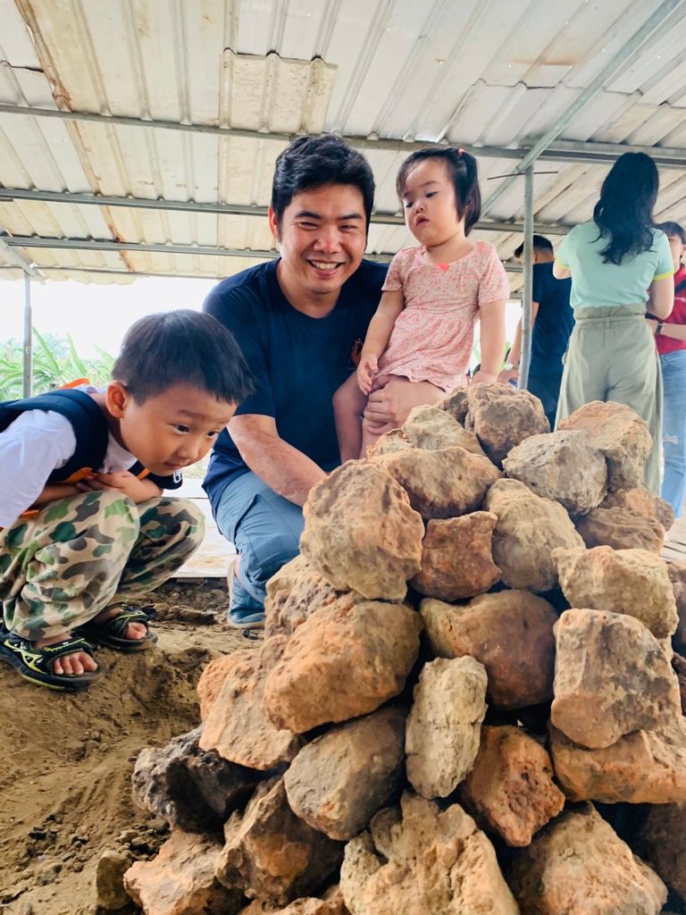這堆窯就是要派阿爸上場囉,看著阿爸熟捻認份地堆窯,就知道阿爸出的了廳堂,入的了廚房,是新好男人的代表。