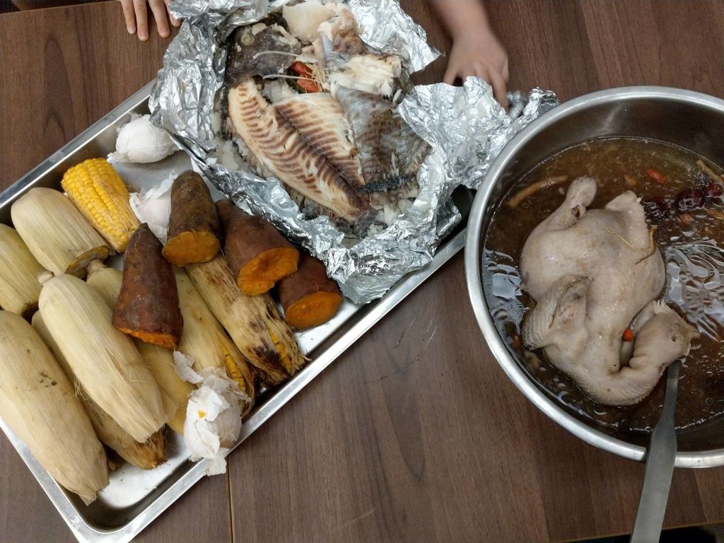 過了2個小時的悶窯,終於期盼到今天的土窯晚餐。吃著遵照焢窯古法用不規則泥塊堆窯用廢棄木材燒出的四物雞、玉米、地瓜與雞蛋,就是有說不出的簡單幸福感。