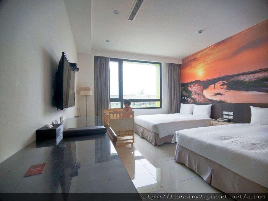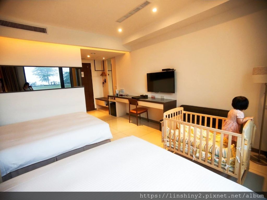 這次我們入住的是溫馨家庭房,寬敞的房間除了有兩張king size的床外,在擺上一個嬰兒床仍是有相當大的活動空間。