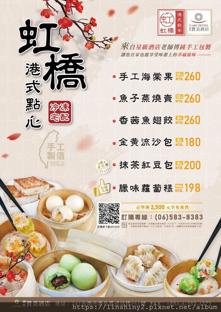 虹橋餐廳不管是合菜或是港點,覺得師傅功力十足。尤其港點類真的讓人回味,本以為只能懷念那好味道,沒想到最近虹橋餐廳也提供手工宅配點心,在家也能享用星級好滋味。