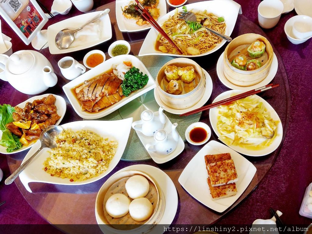 中午用餐時間,最期待的還是虹橋餐廳的港式茶點。這次住房有送4張港點招待券,每張可以折抵一道80元以下的港點。看著菜單其實每道真的都想來一份,於似乎我們就點了滿滿的一桌菜。港點都是師傅手工製作,每道都很真材實料。瘋狂媽咪很推薦金黃流沙包、臘味蘿蔔糕、手工鮮蝦餅、蝦仁鮮燒賣、廣東炒飯跟蟹肉乾燒意麵。尤其蝦類的產品,都能吃到滿滿的鮮蝦,超級誠意十足的。另外廣東炒飯跟跟蟹肉乾燒意麵份量誠意滿滿,適合小家庭享用。