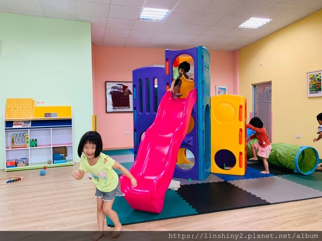 但沙發區好像無法吸引小小孩的目光!!沒關係,贊美酒店還有親子遊戲室,給小孩放風消耗體力。裡面除了廚房遊戲組及桌遊外,還有溜滑梯。