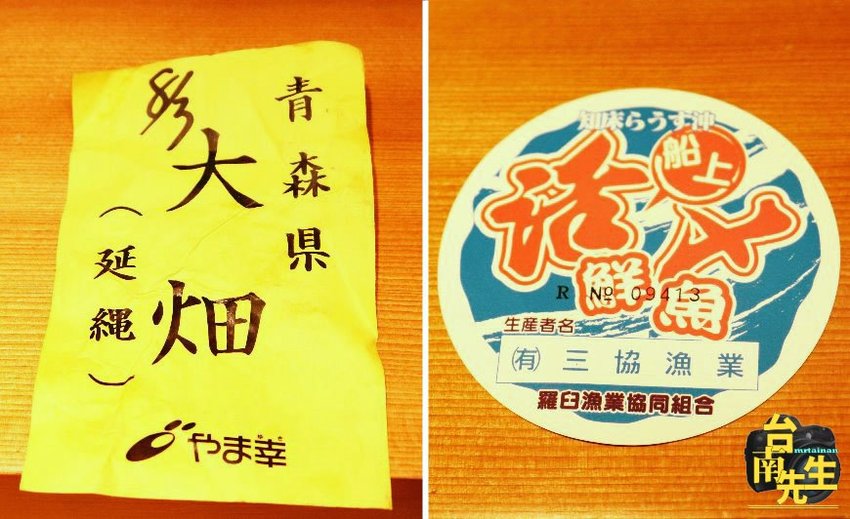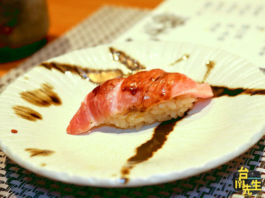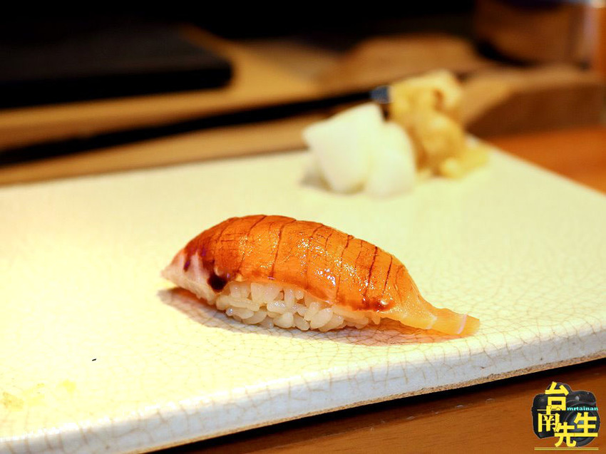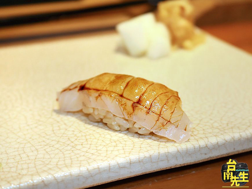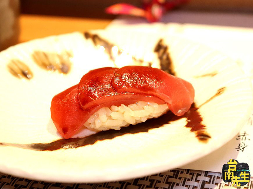 青森產大間鮪赤身:大間鮪是日本黑鮪魚中最頂級的魚種,赤身是背部含脂量較少的部位,肉質軟中帶Q帶點嚼勁,聽老闆說這是連台北高級日本料理名店都很少用到的食材