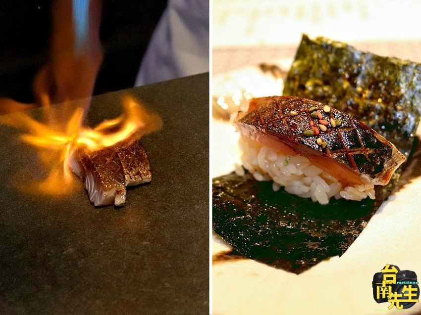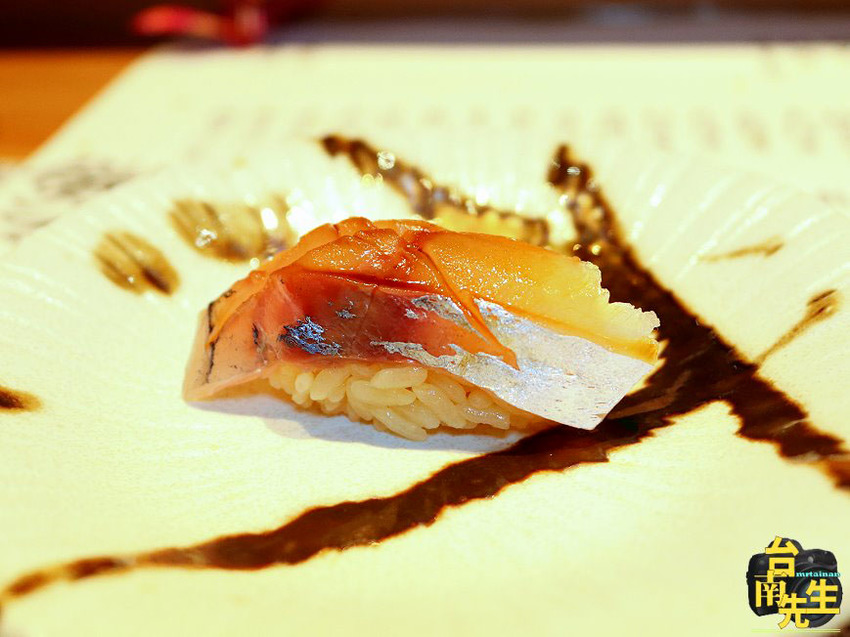 淡路產胡麻鯖:炙燒過後逼出油脂香氣,肉質彈性十足完全無腥味,吃過就會對胡麻鯖的既定印象完全改觀