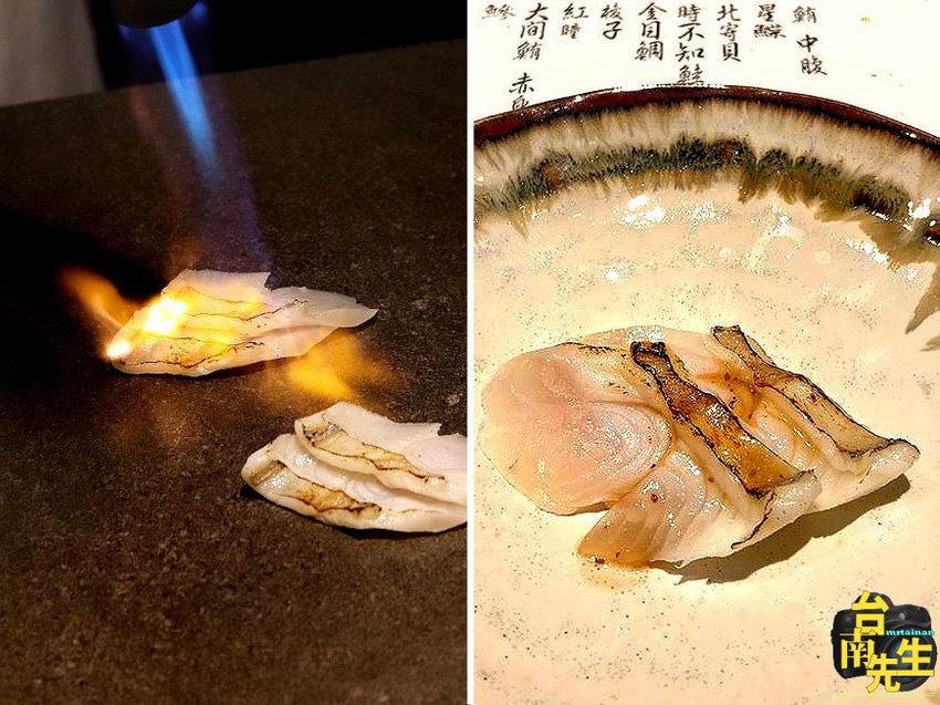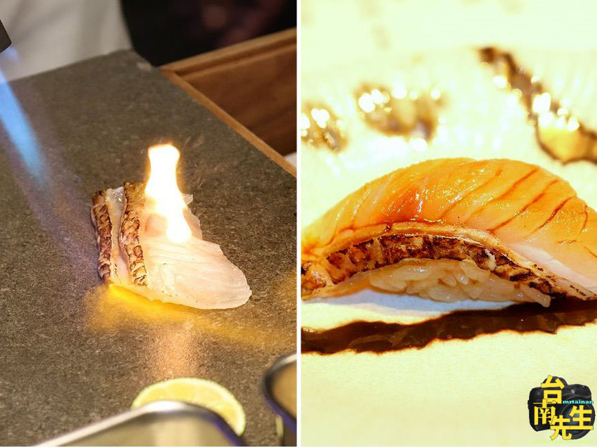 神奈川梭子:炙燒逼出油脂香氣後,再刷上一層特調醬油,屬於旨味特別明顯的魚種,鮮味十足富有彈性