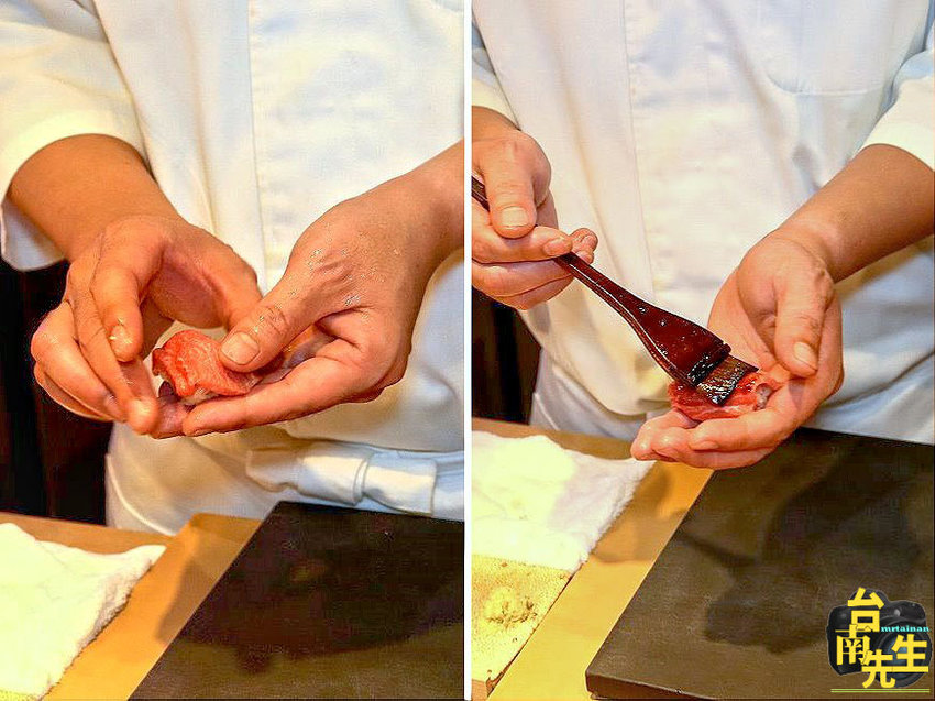 大畑產鮪中腹:香氣醇郁、鮮甜軟嫩,再加上能夠如此近距離欣賞老闆的握壽司捏法,真的是視覺與味覺的雙重饗宴