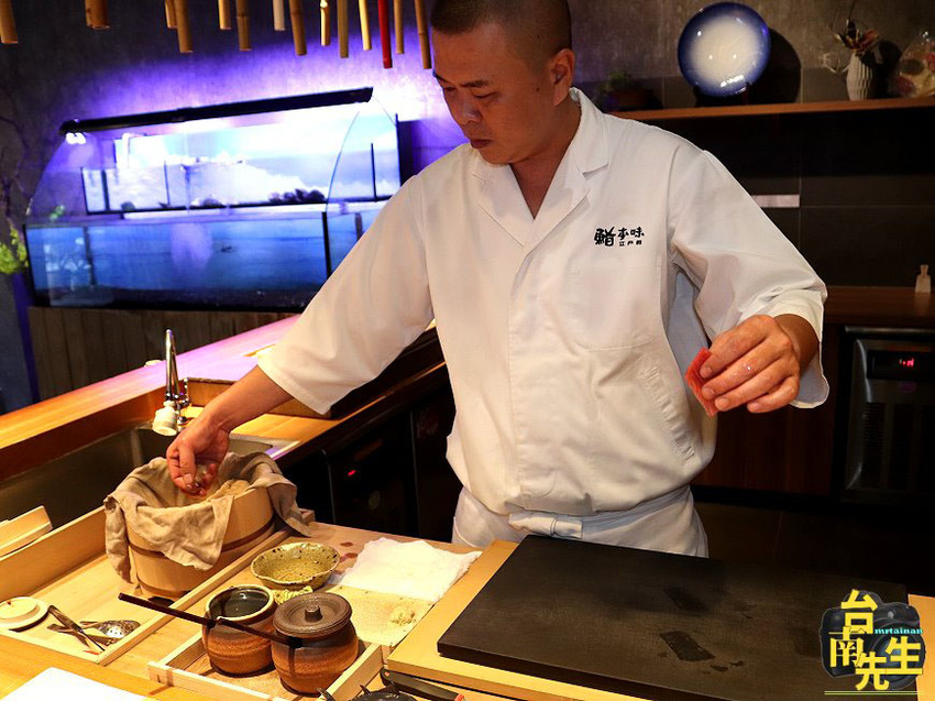 用餐空間分為板前座位及包廂區,老闆都是親自站板前為客人服務,過去曾經跟著日本師傅學習正統日本料理,至今已將近20年
