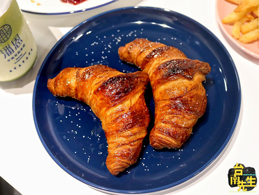可頌:現點現烤,外層烤得香酥脆,裡頭還保有軟Q口感。點飲料+15元送可頌