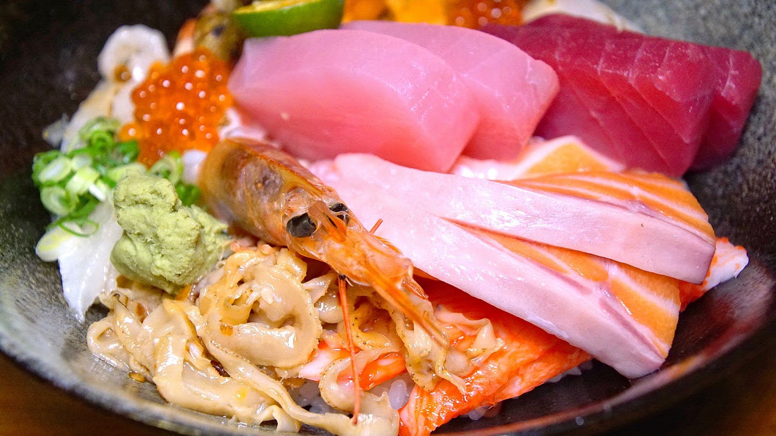 日暮豪華海景丼 NT. 460,菜單中最貴的品項,當然也是最澎湃的一道餐點。簡單的說就是這裡所有生魚的食材,一口氣可以全吃到的丼飯