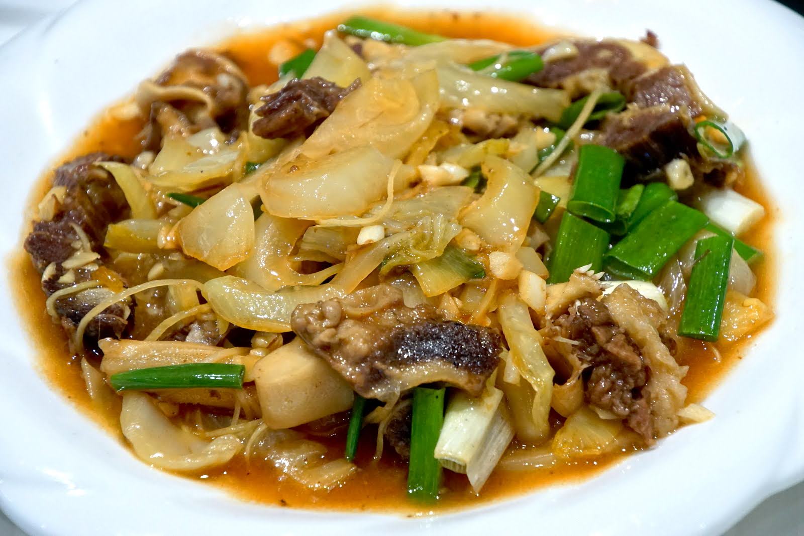 我們點的牛尾以及牛腩都已經下鍋,並隨著湯底一併上桌。牛尾帶著皮,吃起來膠質相當多;牛腩燉到十分軟嫩,還帶著不少牛筋與筋皮