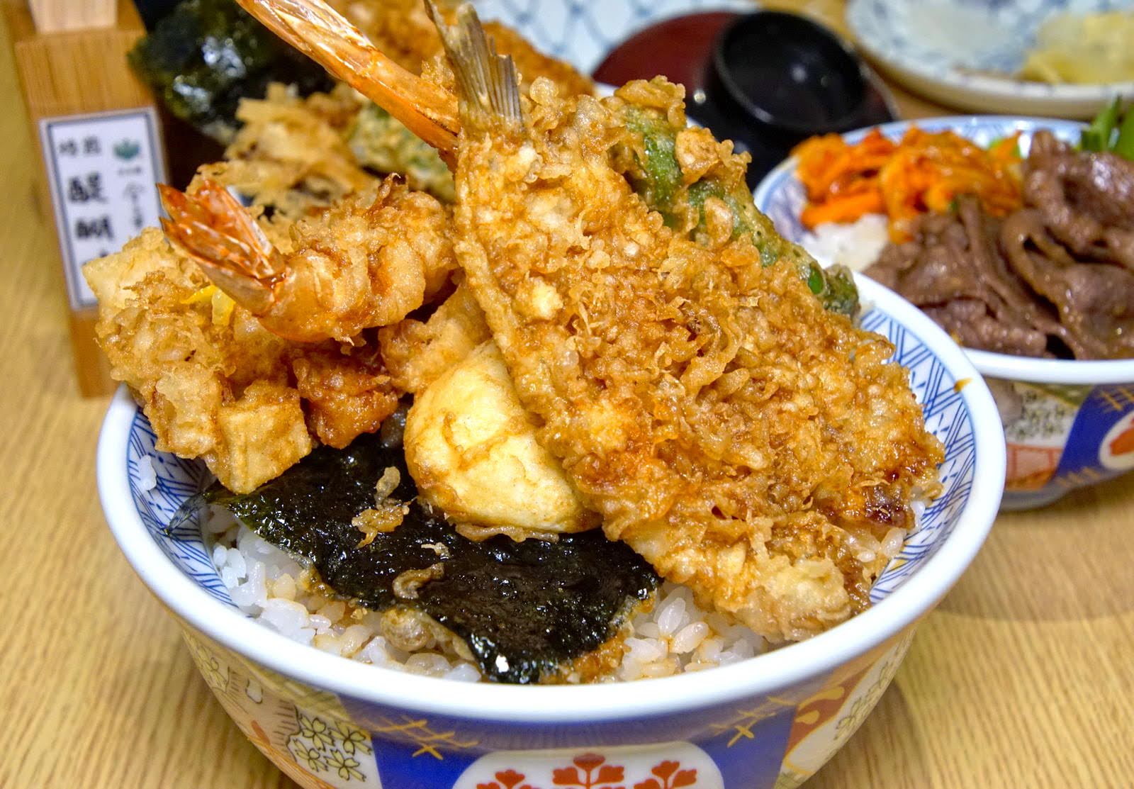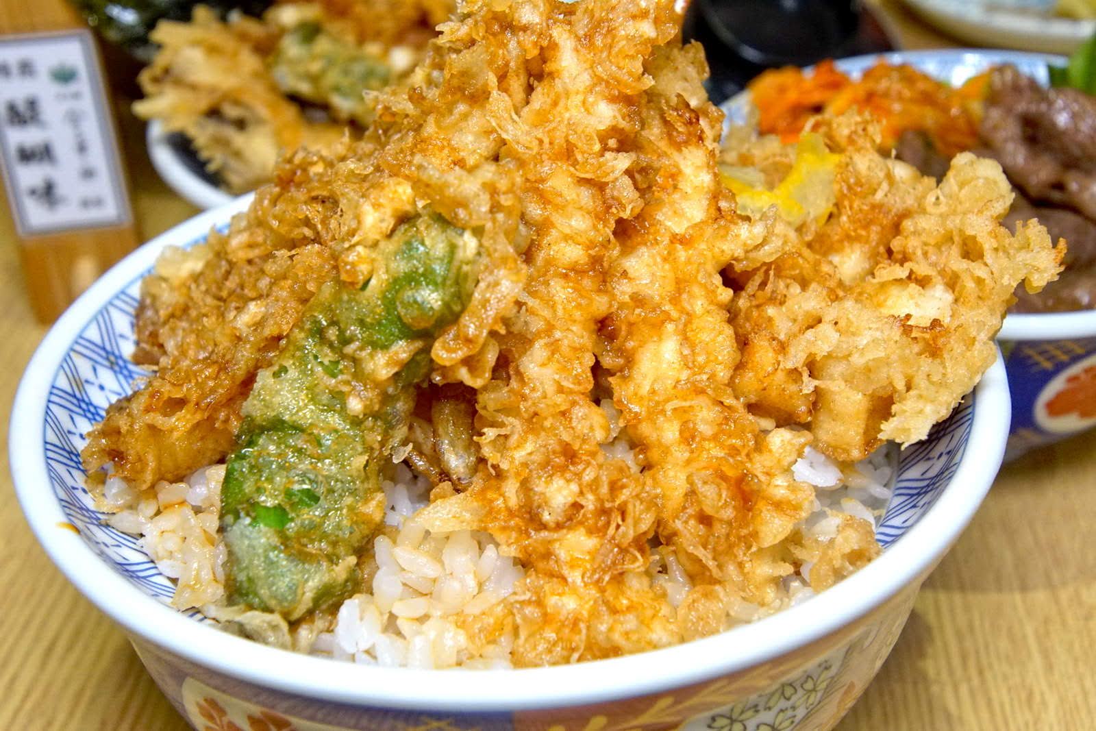可能有人會問天丼是什麼?據說天丼起源於日本江戶時代,當時的攤販以丼鉢盛飯,再放上天婦羅等丼物來販賣,在那時候稱做天ぷら丼(天婦羅丼),後來漸漸簡稱為「天丼」