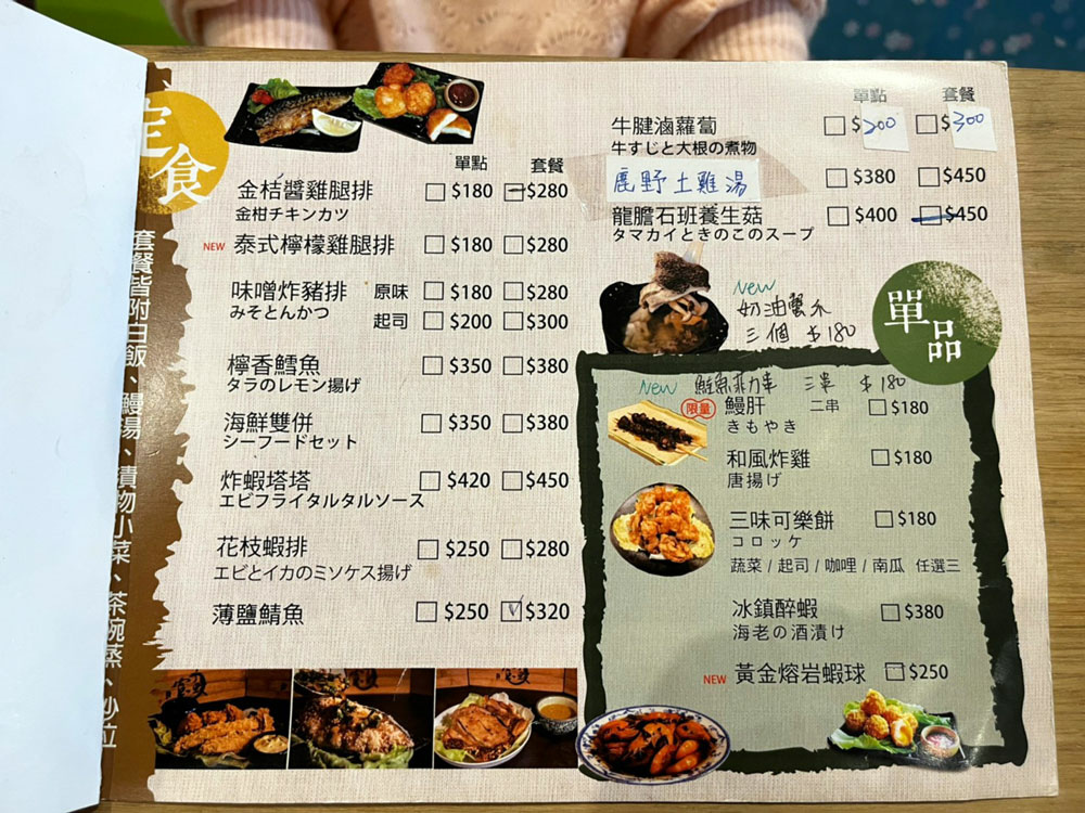 ▼服務人員跟我們簡單介紹了一下鰻魚飯,在日本,鰻魚飯分為關東-醬燒與關西-白燒的製作方式,醬燒主要是浸漬再燒烤,白燒則是鹽烤,另外店內還有各種定食、單點可以做選擇!我們選定了三個餐點:松套餐醬燒、炸蝦塔塔、牛腱滷蘿蔔。
