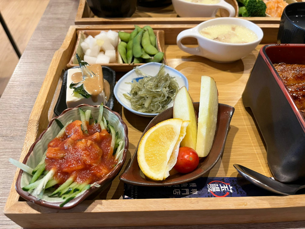 依然是重量級的套餐,四道小菜、水果、白飯、茶碗蒸、鰻湯、主菜。
