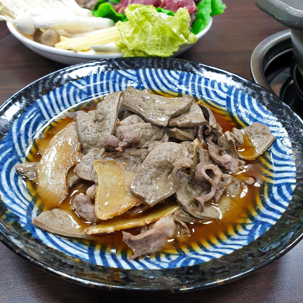 我們點了藥膳羊肉爐(小份)、溫體鮮羊肉、帶皮羊肉、羊腸、麻油小心肝、滷羊腳、香拌麵線(大份)。