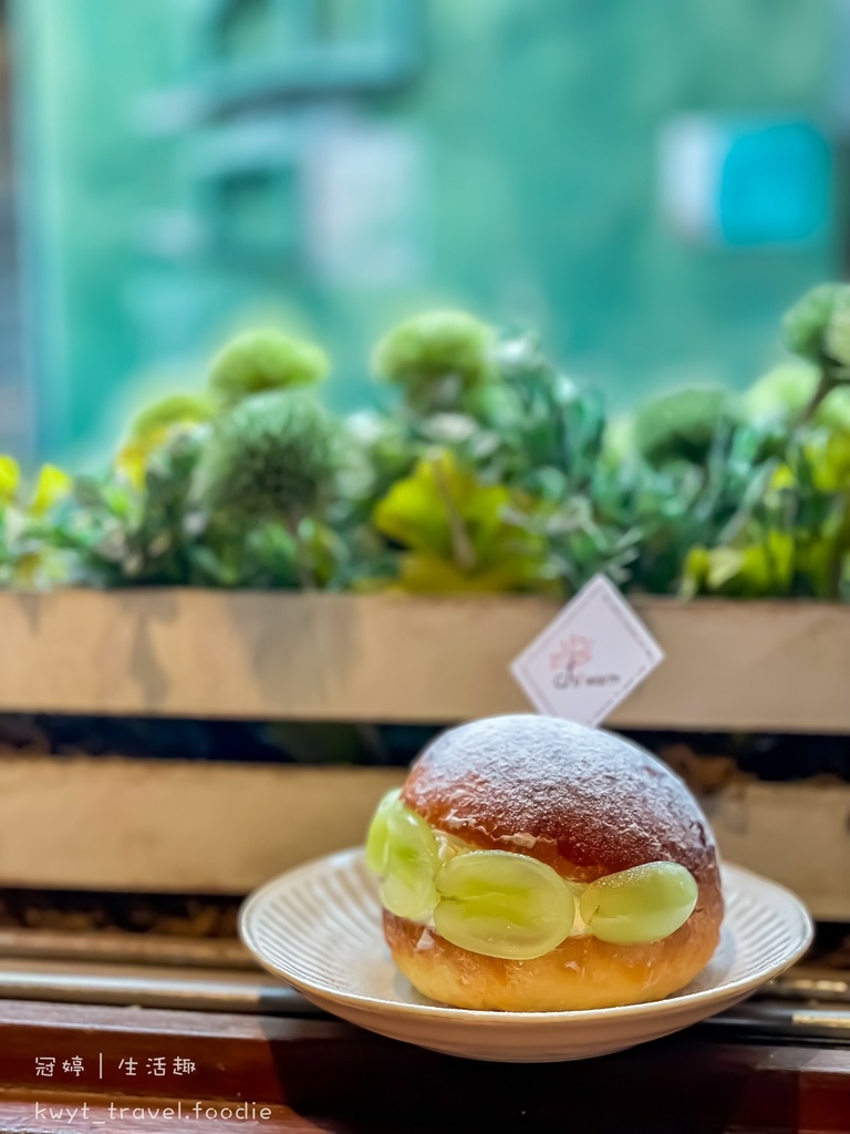 在口感鬆軟的布里歐圓麵包中,夾入自製的鮮奶油作為內餡,加上嚴選的高甜度葡萄點綴,一口咬下可以吃到口感滑順、濃醇香的鮮奶油,與自帶豐富水果香氣的葡萄,與鬆軟綿密的麵包,吃的每一口都是滿足。
