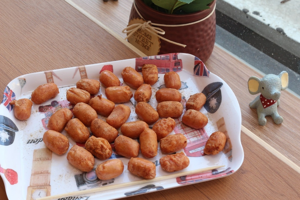 酥脆Q彈又有鹹甜涮嘴風味,小小一顆方便入口,搭配胡椒鹽點綴也相當可口