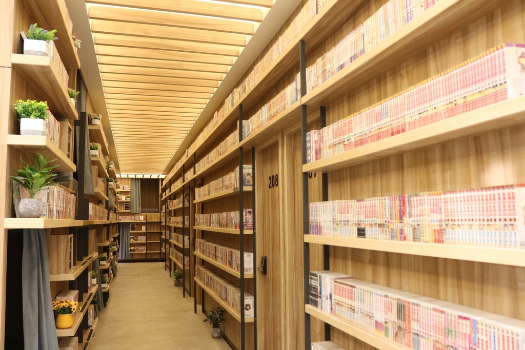 漫畫書集選擇多元,餐點平價美味,外場與包廂也都清爽舒適