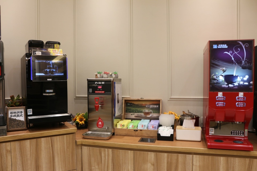 飲品選擇超豐富,不愛太甜的有白開水、茶包、咖啡機.......等