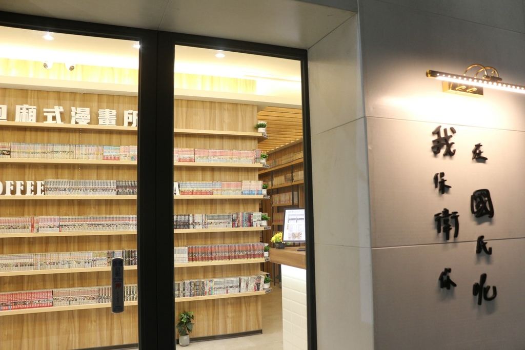保國衛民|漫畫包廂的書架上標示著comics、coffee、tea