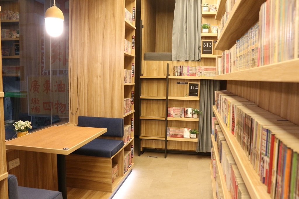 除了外場座位,圍繞書架周圍還有上下舖包廂與獨立包廂