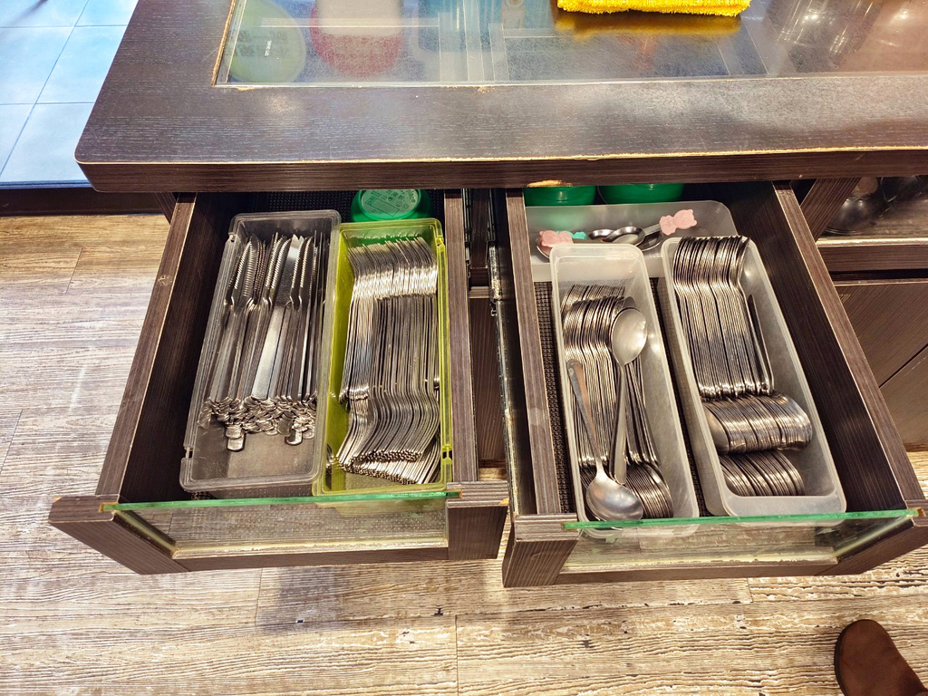 ▼餐具也很整齊衛生的收納在櫃子裡,還有提供兒童餐具,很適合親子家庭來用餐