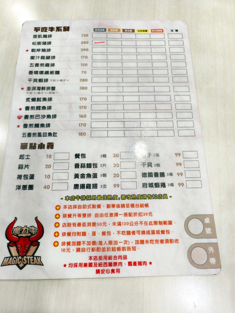 ▼魔力牛牛排館的菜單
