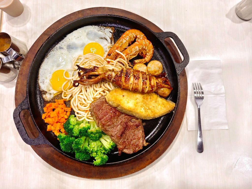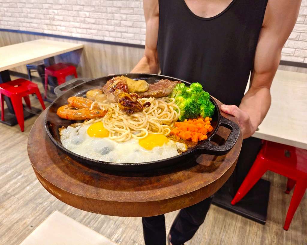 原本我們也是好奇點看看,沒想到就被這巨大的份量嚇到😲還以為說雙人份就只是兩個鐵板,結果這麼大一盤