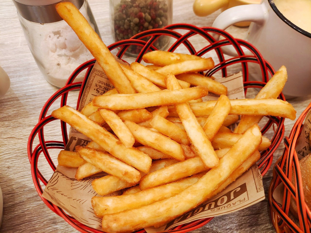 ▼薯條炸得金黃,吃起來外酥內綿,好唰嘴