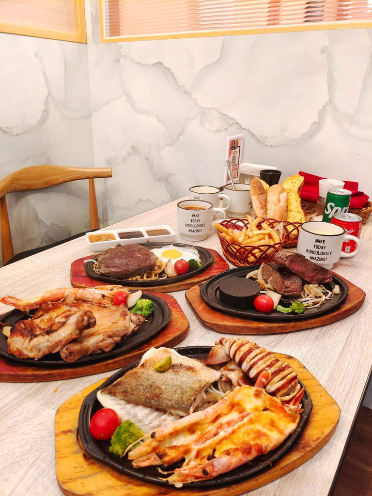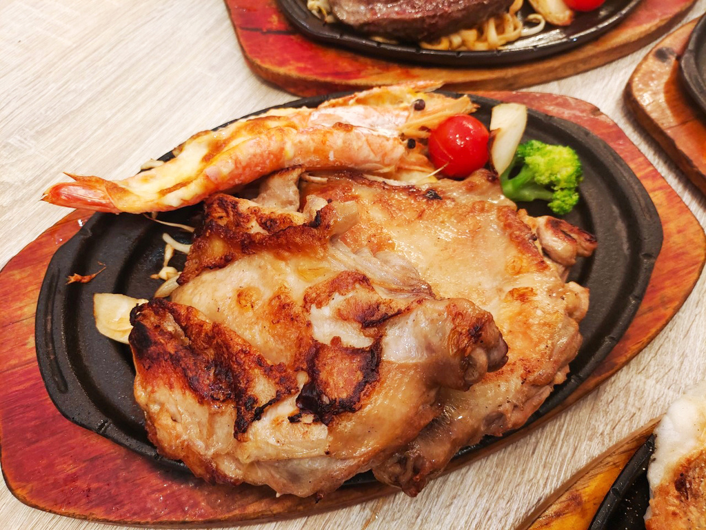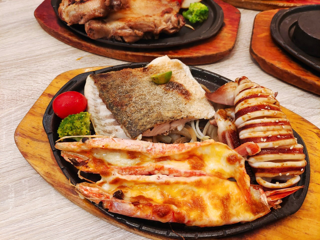 超值海陸鐵板麵套餐:兩主餐$459,均附薯條、蒜包、湯品