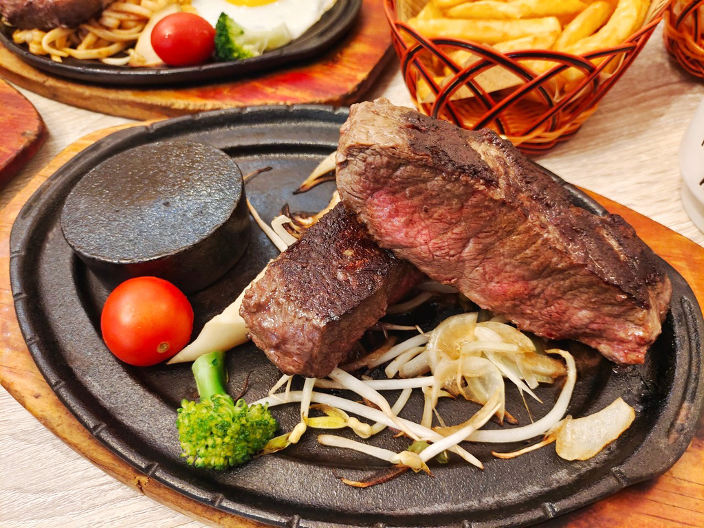 ▼鬥牛士石燒牛排的經典牛排,就是鐵板上附有一顆小烤石,可以再次加熱到自己喜歡的熟度,讓吃牛排更多了份趣味