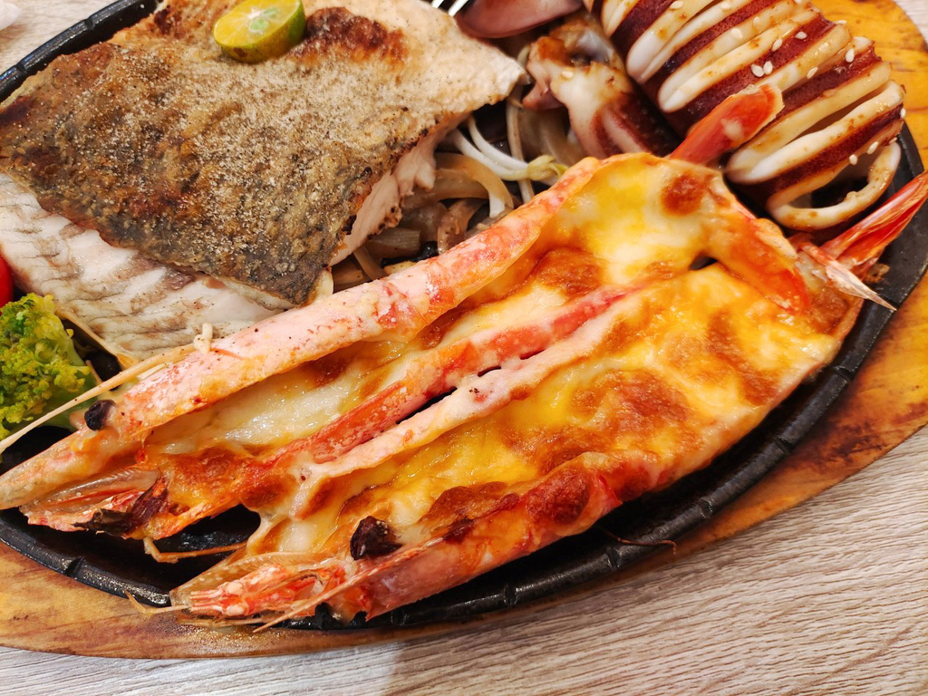 ▼海鮮控點這道準沒錯,紅蝦/扇貝/魷魚/干貝/鱸魚/鱈魚,任選三,絕對海味滿滿
